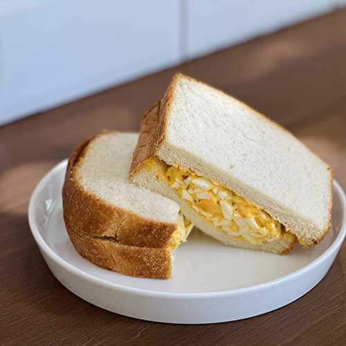 柔軟蓬鬆的厚片牛奶吐司,夾入特製香料口味的蛋沙拉,風味濃厚帶點鹹香,推薦給喜愛鹹食、飢腸轆轆的你。